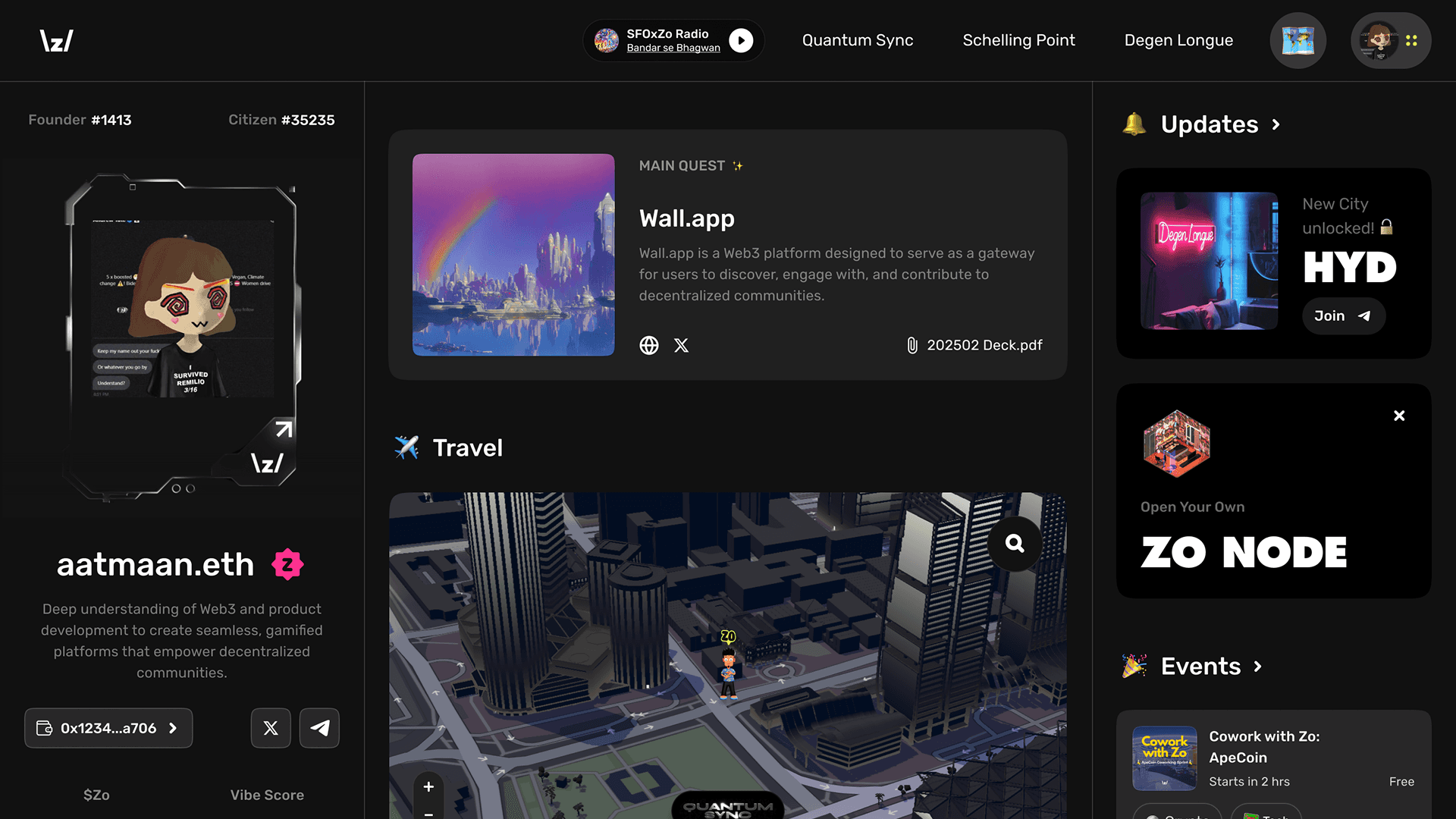 Zo World is a decentralized travel and lifestyle ecosystem that merges physical hospitality with Web3 technology to create a global community for digital nomads and creators. The platform offers "Zo Houses"—tech-enabled clubhouses and co-living spaces in cities like Bangalore and San Francisco—accessible via exclusive, fractional-ownership NFT memberships. By integrating travel planning, AI-driven personalization, and collaborative work zones, Zo World aims to redefine modern living through a borderless network rooted in connection and shared ownership.